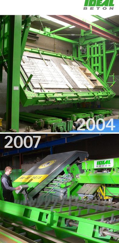 Bis zum Jahr 2005 setzte sich die zweischalige Doppelwand als Norm am Markt durch. Die damaligen Geschäftsführer Georg und Thomas Huf erkannten das, investierten in eine neue hochmoderne Wendeanlage und machten IDEAL Beton damit zu einem der ersten Unternehmen, das Doppelwände industriell herstellen konnte. Mit der Runderneuerung der Umlaufanlage im Jahr 2007 hat sich IDEAL Beton schließlich fit für eine erfolgreiche Zukunft gemacht: Modernste Maschinen und eine innovative Steuerung machen den Weg frei, für die Fortsetzung der erfolgreichen Firmengeschichte.